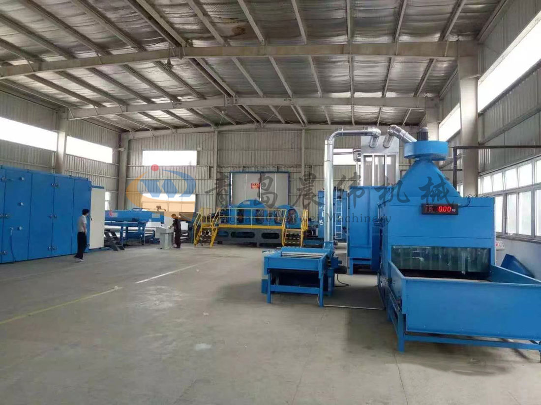 6. CWHF-烘房:本机是无胶棉、硬质棉产品后处理设备中的主要机型之一,用于对纤维烘干定型。加热方式 : 天然气、导热油、电加热。本机具有穿透性强,受热均匀,产量高,耗能低等特征。该烘房由2只独立式离心风机对角安装,吹吸式均匀送风。燃烧室采用T型分布原理,可以充分散发热量,提高热能的转换效率。传动为链板夹持式进网,上层链板可上下升降;多区加热,一区冷却;每区单独控温,可以单独开关;冷却区有冷压辊,保证成型压力,控制产品厚度;