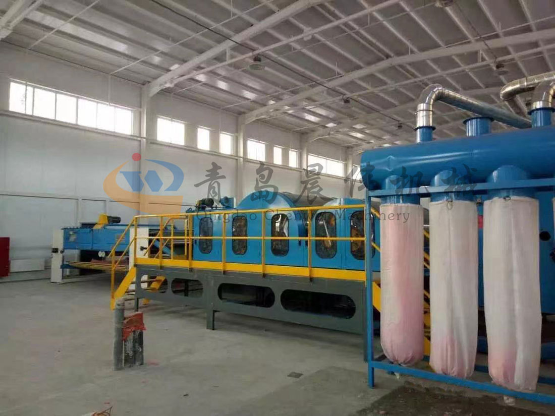 2. CWKS-开松机:各种不同纤维被放入水平输送帘,经压棉辊和对辊罗拉喂入,经高速打手开松后经输棉风机以适量的风量输送纤维原料供后道工作使用;并配备桥式除铁装备。开松效果好,不易缠棉,产量高。