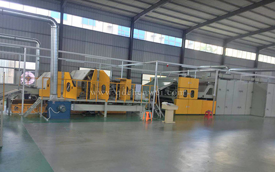 2. CWKS-开松机:各种不同纤维被放入水平输送帘,经压棉辊和对辊罗拉喂入,经高速打手开松后经输棉风机以适量的风量输送纤维原料供后道工作使用;并配备桥式除铁装备。开松效果好,不易缠棉,产量高。
